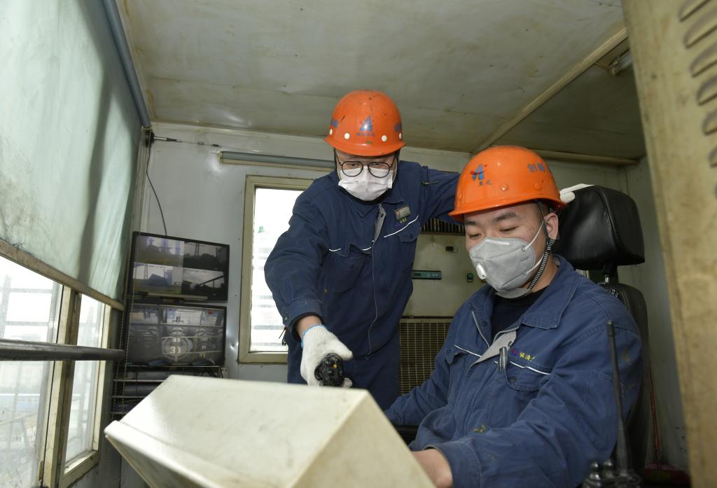 1月25日,臨渙焦化公司煉焦一車間二班班長張昂(左一)班中進行崗位安全巡查。當日,該車間200余名干部職工堅守生產一線,以勞動的方式迎接新春佳節的到來,保證了節日期間持續穩定生產。