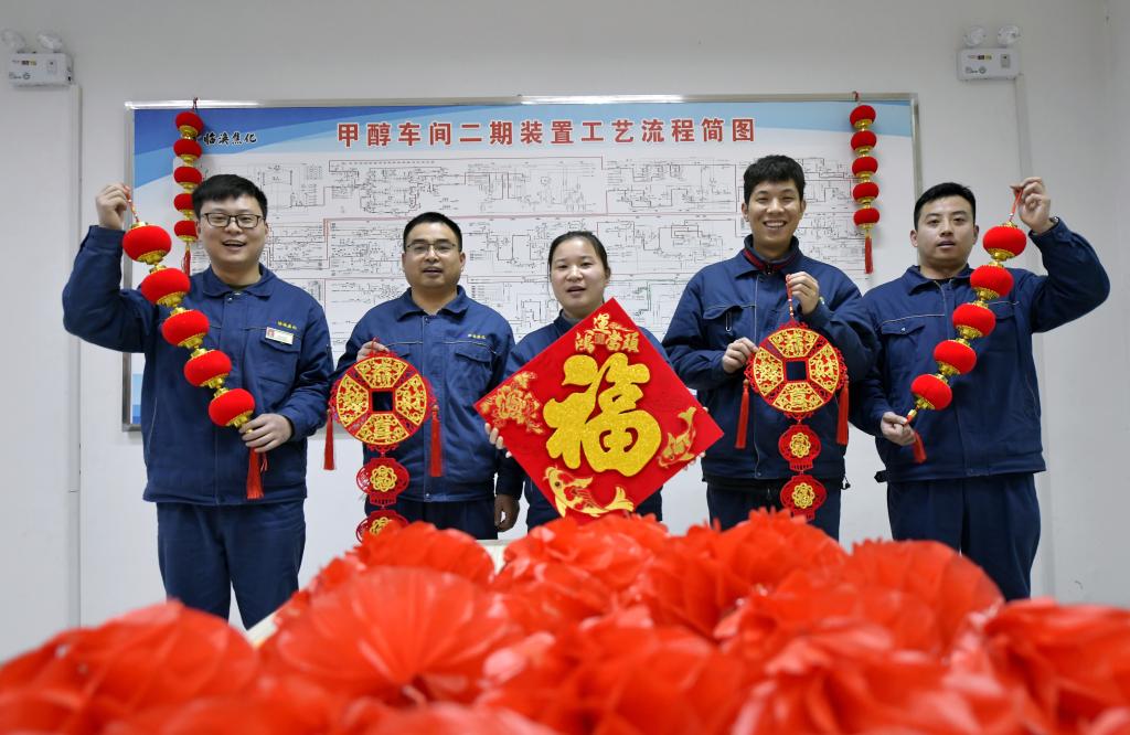 火紅的燈籠高高掛,喜慶的春聯迎春節。臨渙焦化公司甲醇車間每年春節都為車間辦公樓掛燈貼福,營造祥和喜慶節日氛圍,班組職工更是在不影響安全的情況下,手拿紅燈籠留下崗位過年的別樣堅守,處處透著濃濃的年味。