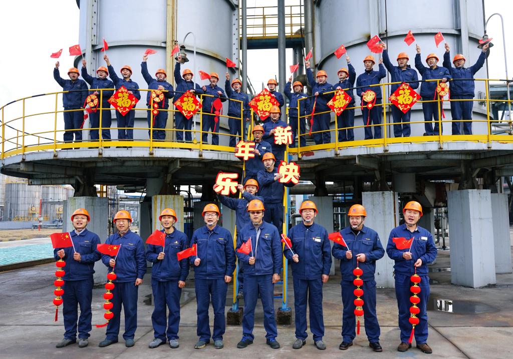 年初一,臨渙焦化公司精苯車間,利用班前會,把當天上班職工聚集在一起,歡聚一起,拍下一張喜慶祥和的“全家?!?,車間黨支部書記劉升說:“這樣熱熱鬧鬧、紅紅火火,大家一起崗位過年是另外一種幸福。”