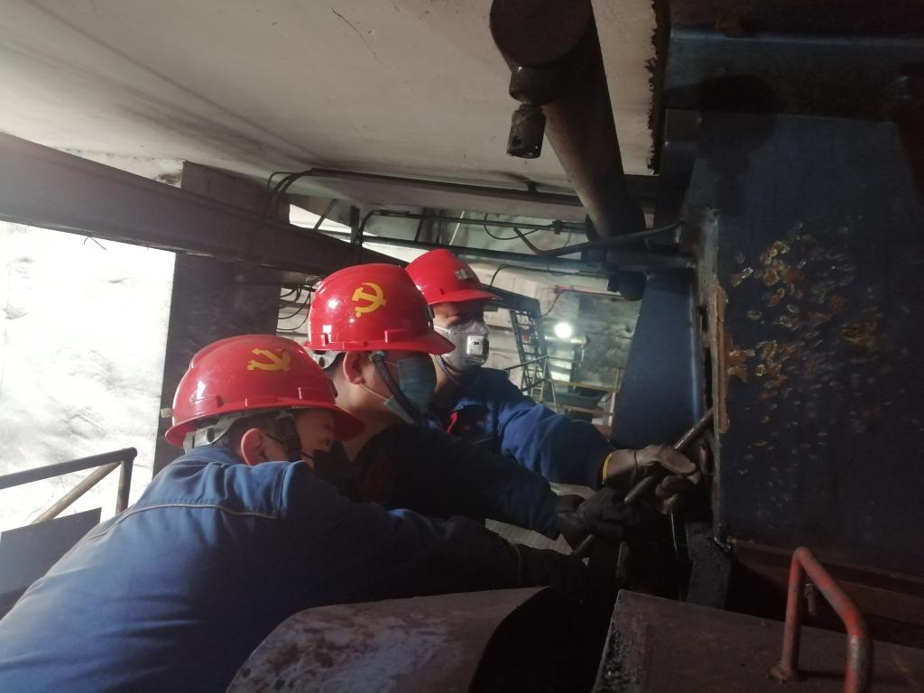 “是共產(chǎn)黨員就站出來!”班長朱干文話音剛落,三名黨員站到他身邊。朱干文強調(diào):“面對新型冠狀病毒,各條戰(zhàn)線上的共產(chǎn)黨員不畏艱險,沖鋒在前,我們要向他們學習。在我們面前,要疏通這堵塞蓬煤的萬噸原煤倉,穩(wěn)定原煤供應,保證精煤洗選,大家有沒有信心?”三人齊聲說“有!”