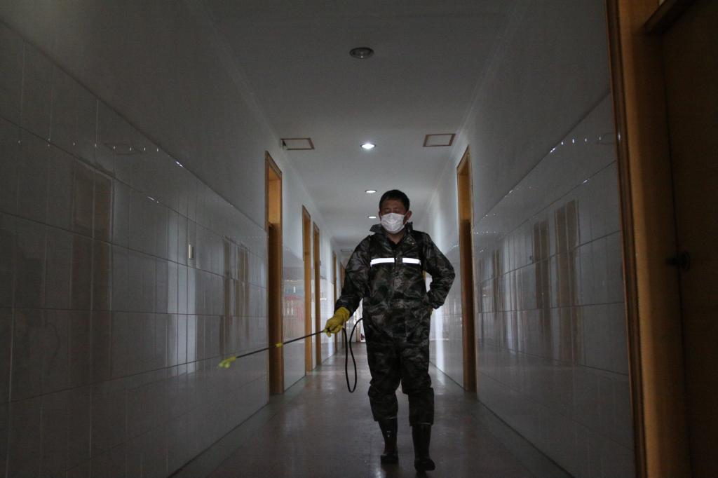2月4日,臨渙礦物業(yè)公司班長、共產(chǎn)黨員張強正在進行消毒作業(yè)。從1月19日開始,張強就一直奮戰(zhàn)在防控戰(zhàn)“疫”的第一線,連續(xù)17天,不論白天黑夜,對責任范圍內(nèi)的職工浴池和生產(chǎn)樓進行消殺毒和環(huán)境治理,一身嶄新的工作服因為連續(xù)沾染消毒藥劑,被腐蝕出現(xiàn)三處破損,他卻依然堅守崗位,守護職工健康,盡顯黨員本色。(劉輝)