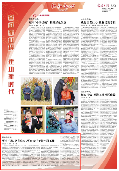 “學習黨的二十大報告時,工友們特別關注報告里關于技能人才的相關表述。”劉婉春告訴記者,“當大伙兒看到報告提出,‘加快建設國家戰(zhàn)略人才力量,努力培養(yǎng)造就更多大師、戰(zhàn)略科學家、一流科技領軍人才和創(chuàng)新團隊、青年科技人才、卓越工程師、大國工匠、高技能人才’時,興奮地直拍大腿!”劉婉春說。