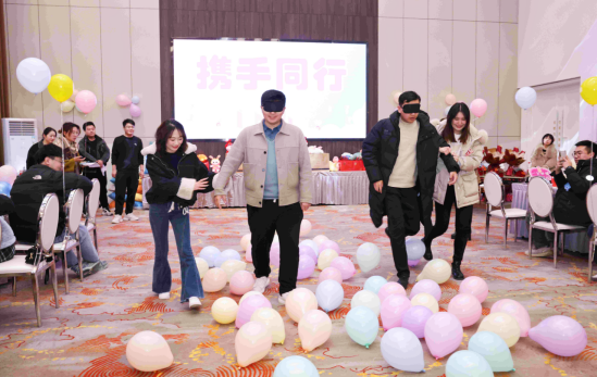 參與此次活動的20名單身男青年來自工程處、工程建設公司、臨渙礦等單位近年來新入職高校畢業生,18名單身女青年來自淮北市教育、金融、醫療系統單位。活動設置了“穿越呼啦圈”“搶紙杯”“攜手同行”“踩氣球”“報紙拔河”等年輕人喜聞樂見的互動小游戲,以小組為單位增添競技性,讓每個人的參與熱情持續高漲。在現場主持人的引導下,游戲“熱身”產生了很好的效果,男女青年從陌生到熟絡,迅速打成一片,紛紛敞開心扉,大膽展示自己、表達想法,整個活動氛圍輕松愉悅,充滿了歡聲笑語。