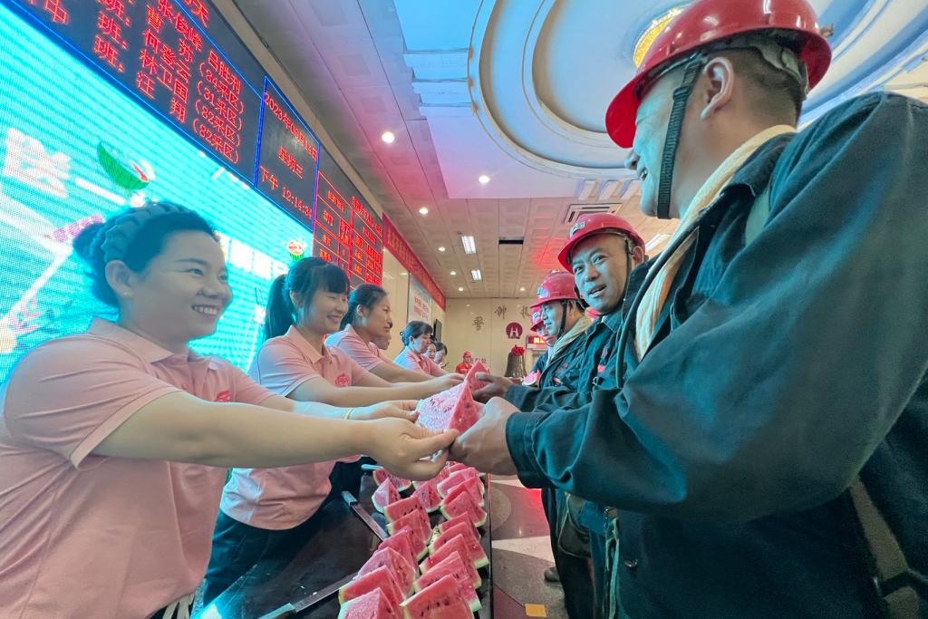 入夏以來,該礦工會根據氣溫不斷升高的實際情況,按照防暑降溫工作要求和“送清涼”活動方案,積極組織人員精心采購了西瓜,并在到貨后,第一時間進行發放,切實做好職工防暑降溫后勤保障工作,用實際行動讓職工“清涼”度夏。(撰稿:張麗霞 審核:張萬學)