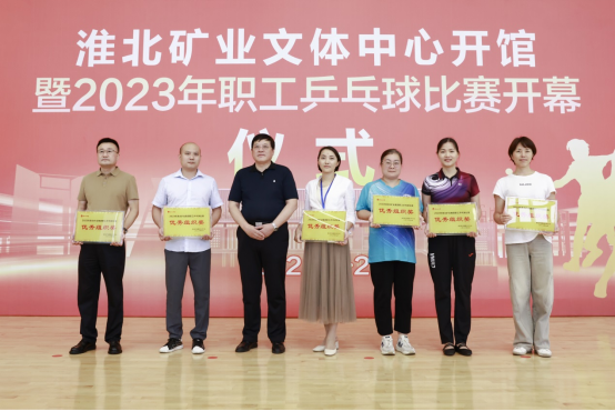 在中秋、國慶來臨之際,9月26至27日,淮北礦業(yè)集團在新落成的文體中心舉辦“喜迎國慶、‘乒’搏有你”2023年職工乒乓球比賽,經(jīng)過兩天的激烈比拼,決出了男子團體、女子團體、男子單打、女子單打、優(yōu)秀組織獎等各類獎項,集團工會第一副主席劉杰和工會、物業(yè)分公司相關(guān)負(fù)責(zé)人為獲獎單位和選手頒獎。