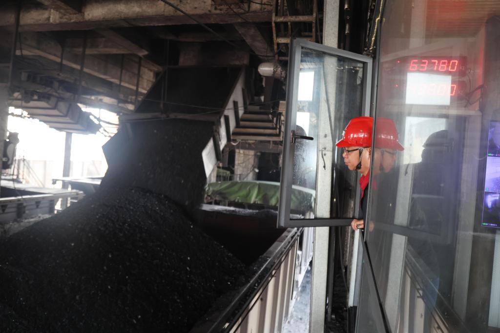 圖為該礦供應(yīng)銷(xiāo)售部職工呂運(yùn)賀正在監(jiān)裝原煤外運(yùn)裝車(chē)情況。