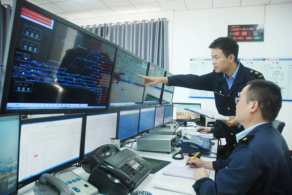 圖為臨渙電務(wù)段信號(hào)領(lǐng)工區(qū)領(lǐng)工長(zhǎng)石磊查看信號(hào)聯(lián)鎖機(jī)房信號(hào)集中監(jiān)測(cè)系統(tǒng)運(yùn)行情況