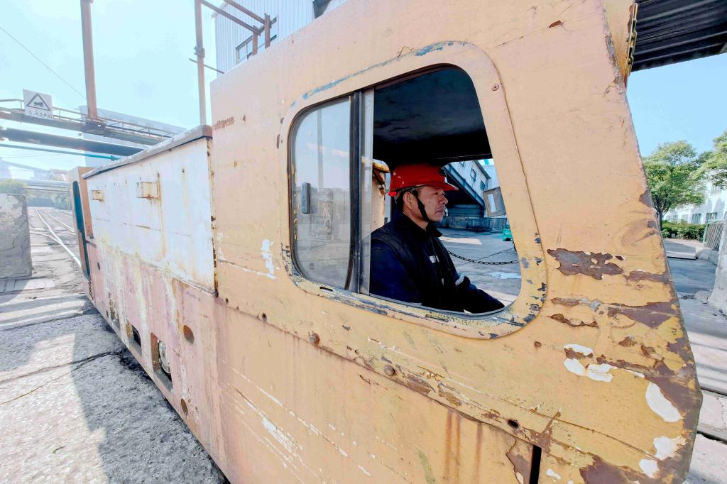 圖為運(yùn)輸區(qū)電機(jī)車(chē)司機(jī)劉召正在拉運(yùn)即將入井的物料